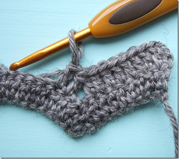 Row 1: Dc in 4th ch from hook, dc in next 6 ch, dc2tog, dc in next 8 ch, *ch 3, dc in next 8 ch, dc2tog, dc in next 8 ch; rep from * 3 times.