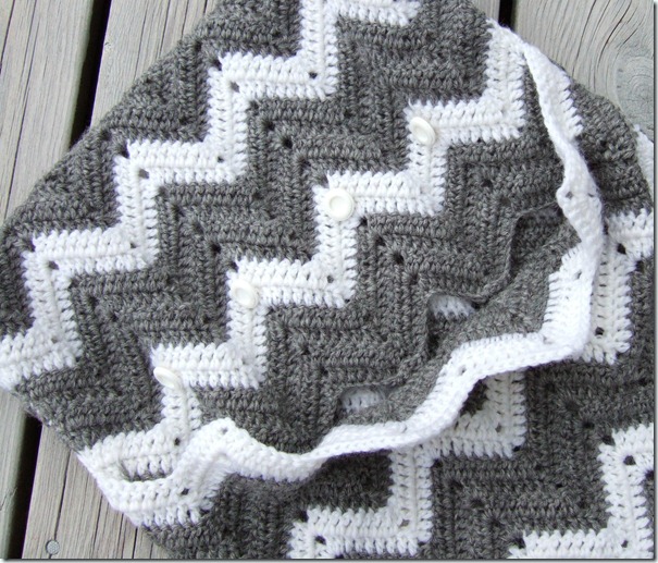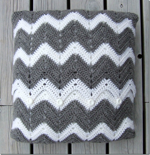 Turn the right side out and sew on some buttons. You use the holes in the chevron tops as button holes.