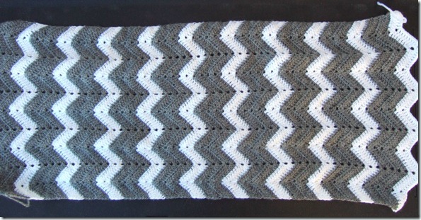 The grey pillow under has two colours in this sequence: Four rows grey and two rows white.