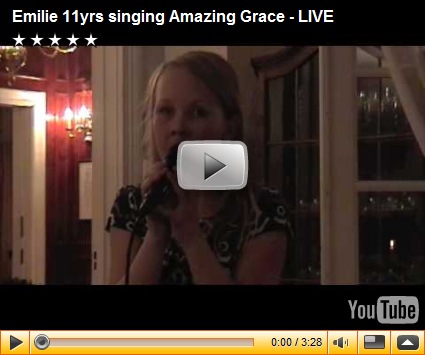 Startar med Emilie som syng “Amazing Grace”. Og ja, eg er tanta til Emilie :)